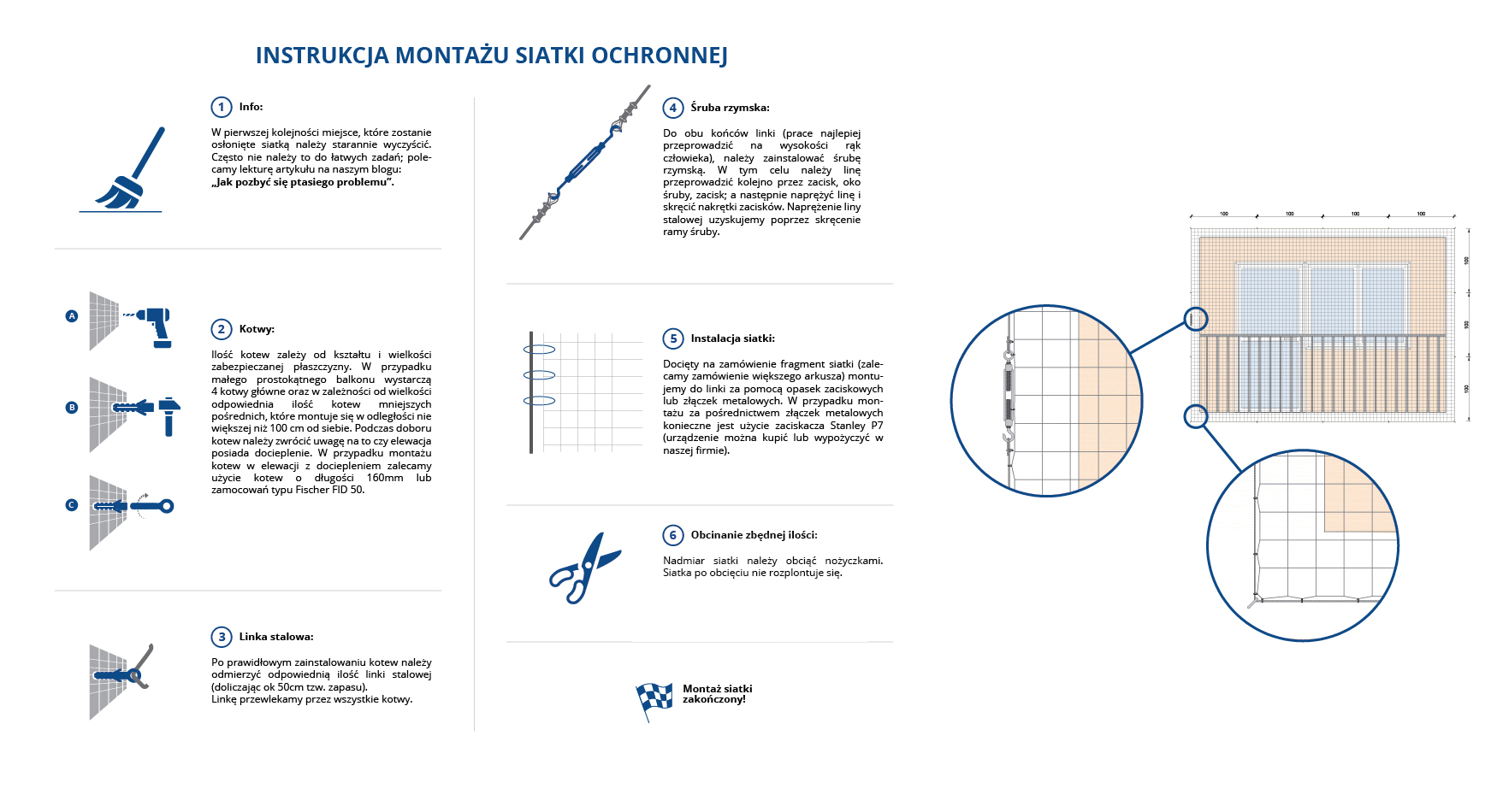Prawidłowo zamocowana i napięta linka stalowa pozwala stworzyć solidny stelaż, który pozwoli w równomierny i estetyczny sposób naprężyć siatkę zabezpieczającą.